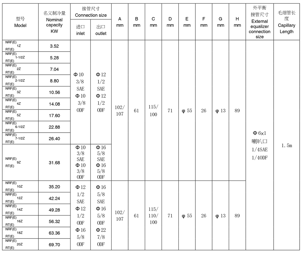 NRF(E)、RT(E)專用于 R410A系列熱力膨脹閥是一體式膨脹閥,適用于空調(diào)、商業(yè)制冷、運(yùn)輸空調(diào)及冷凍等領(lǐng)域。